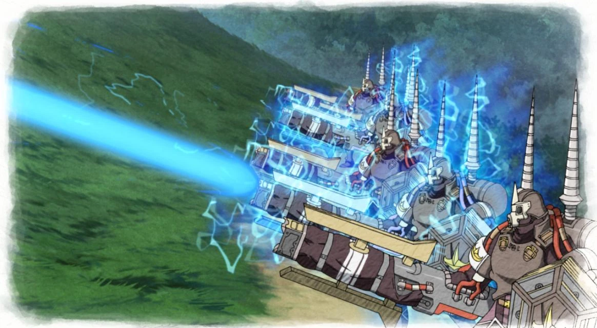 Following the Empire's defeat, a similar system was used by the Gallian Revolutionary Army (GRA) to deadly effect. Unlike Maximilian's system, the GRA were able to mass produce this technology and even had an entire corps of such soldiers, known as V2's, at their disposal, led by Dirk Gassenarl. An improvement on the imperial design, the GRA system allowed a portable generator to be carried on the backs of the soldiers operating it. Supplementing the on-board power supply was a supply truck mounted generator, allowing the V2 soldiers to make use of a shield system and more powerful attacks; however, these generators were easily destroyed, leaving the unpowered V2 soldiers vulnerable.