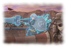 Close by masses of Imperial reinforcements led by Selvaria Bles form up against the remaining militia units, including Faldio's Squad 1. As she unleashes her Valkyria's Power, her body is engulfed in a bright blue glow as Faldio, Alicia & Welkin saw only moments before and with the "War Witch" Selvaria Bles leading the way, the Imperial forces swarm across the desert plains towards the Gallian forces, who brace themselves for the battle to come.