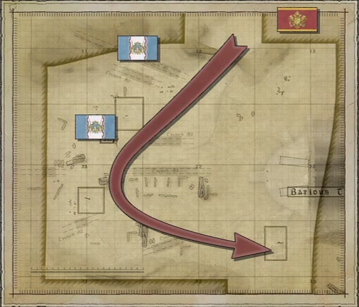 To the Western side of the map is the Barious Ruins, the Eastern side is strewn with rubble, ditches, trenches and walls which can be used to delay the Batomys.