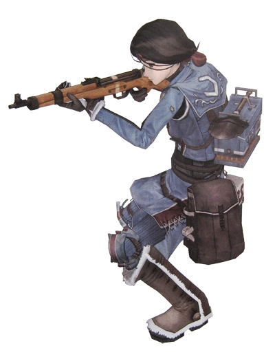 Claudia joined the militia in order to win back her peaceful life. She feels she is cursed with bad luck, as every time she left her home, she was showered with misfortune. She ended up locking herself up in her house, but even that safe haven was destroyed with the coming of the war. After the war, she found her calling as a nurse, but her bad luck struck again and she was forced to take the exam five time before she was able to become a certified nurse.