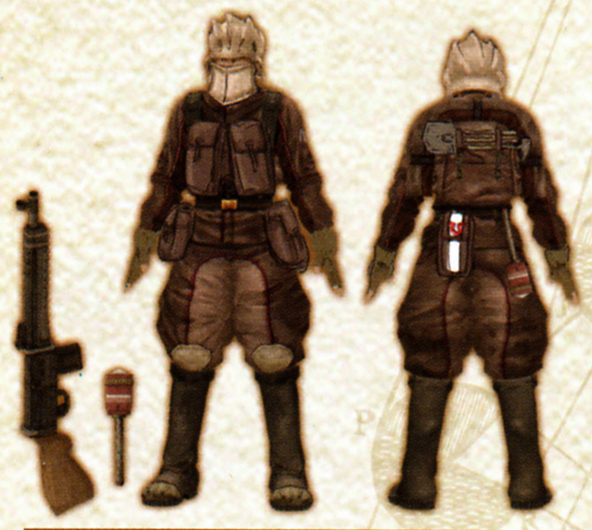 Imperial engineers were equipped with a ZM Kar rifle, grenades, Ragnaid, and equipment for disarming landmines. Imperial engineers were distinguishable from regular infantry by the three ridges on their helmets and their lighter armor.