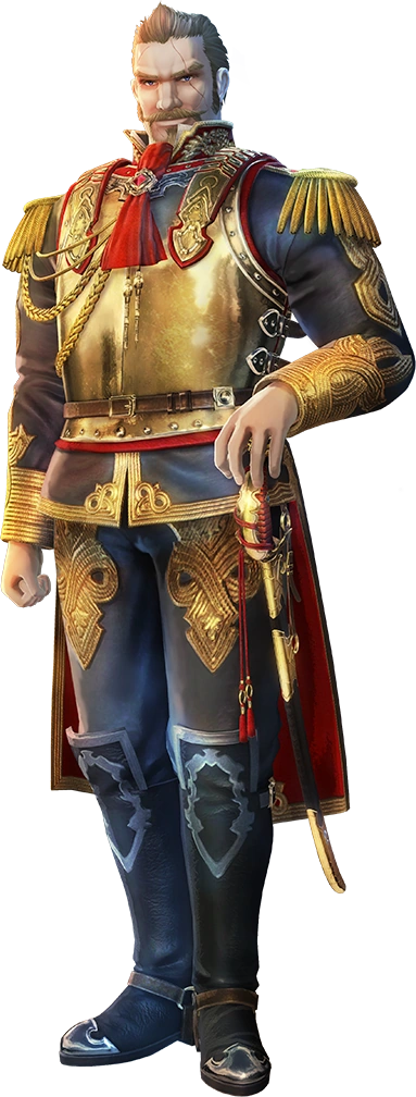 No. 1 of the Empire’s Grand Generals. Head of the Army. The general. Also serves as the Minister of War. As Claudius’ foster brother, he has been a loyal follower since Claudius was made crown prince. He participated in the orphanage raid incident, and is an enemy of Amleth and company. He is a lively general with great bravery and leadership ability. He has a strict, military-esque tone. He likes "humanoid" heavy magic machinery.[1]