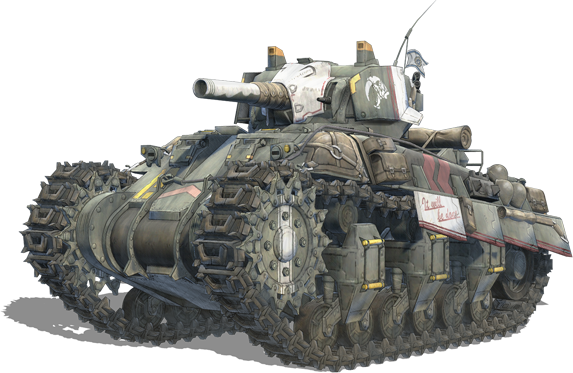An offshoot model of a Vinland-made medium tank known as the "Minute." Squad E's version has been modified to Miles's [sic] specifications. It was then named the Hafen, after Claude's home town in the Principality of Gallia.