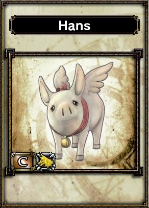 Hans makes an appearance in Samurai & Dragons as a C monster card. As an C monster card, Hans is of the Beast race and possesses the base skill, Refresh.