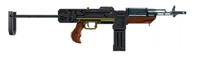 Standard fully automatic weapon with average accuracy and the best per-shot power of any of the stock Machine Guns.