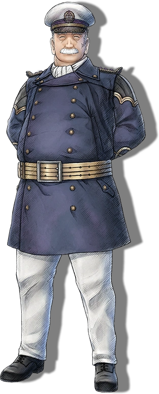 Edinburgh navy captain, age 52. Captain of the Cygnus Fleet's snow cruiser, the Centurion. A veteran officer who has survived many battles at sea. Serene and mild-manner. Never loses his composure, even in the most dire circumstances, which helps keep morale up for the entire crew. He was once respected (and feared) as the "Captain from Hell," when he was a much stricter man. Even now, he can be harsh when the situation arises. His wife, son, and daughter were all lost to the war. Once, a ship under his command fell to the enemy, and he swore to never let it happen again. After the ceasefire, his injuries forced him to retire from the front lines. He now teaches officers-to-be as a naval academy instructor.