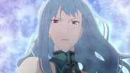 Selvaria wearing a singer's costume.