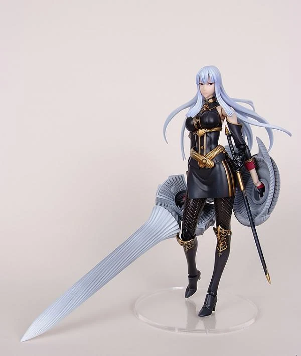 A limited-release figure of Selvaria titled "CharaGumin Selvaria Bles (Hobby Round 7 limited edition)" was released in April 8, 2012 by figurine producer, CharaGumin. It was manufactured by Volks, Inc. The Selvaria figure is approximately 230mm and approximately 8.97 inches tall. It was sculpted by Takami Toshiaki (a-brand). The limited edition comes with the Ruhm and right hand parts holding the gun (mantle is not included).[4]