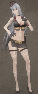 This is the controllable version of Selvaria in The Two Valkyria, and is the same as the unlockable version save for her rank and hitpoints. She is fixed at level 20 during the DLC, and her stats reflect that level, save her AP which for some reason reflects a Scout at level 10.