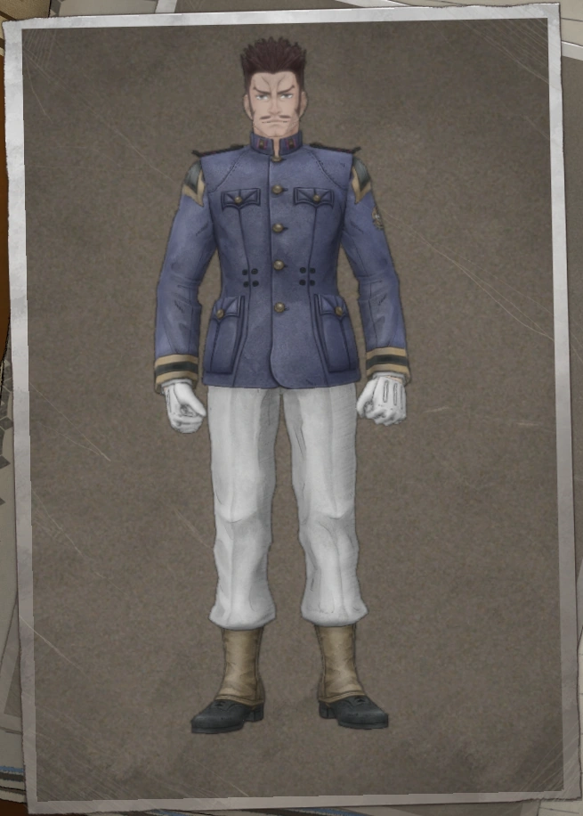 Sergio Mousquelaire (セルジオ・マスキュラー?) - Military doctor belonging to the Edinburgh Navy, stationed on the snow cruiser Centurion. He used to be a pediatrician at a town hospital before the war. He’s a funny and kind person, but he can become scary when someone tries to escape treatment. His hobby is bodybuilding, boasting the top physical strength on the ship. He is voiced by Masaya Takatsuka[1] in Japanese and Patrick Seitz in English.