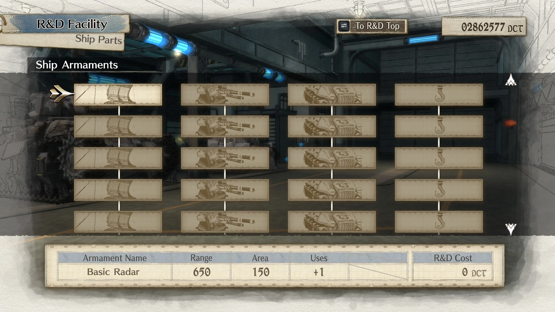 The player starts out only having access to the Radar Ship Order: this is an obvious gameplay conceit, since the Snow Cruisers have been shown firing their Amp Cannons in the story already at this point. To unlock the others, they must develop the corresponding Ship Upgrades, which gradually unlock over subsequent missions just like other upgrades.